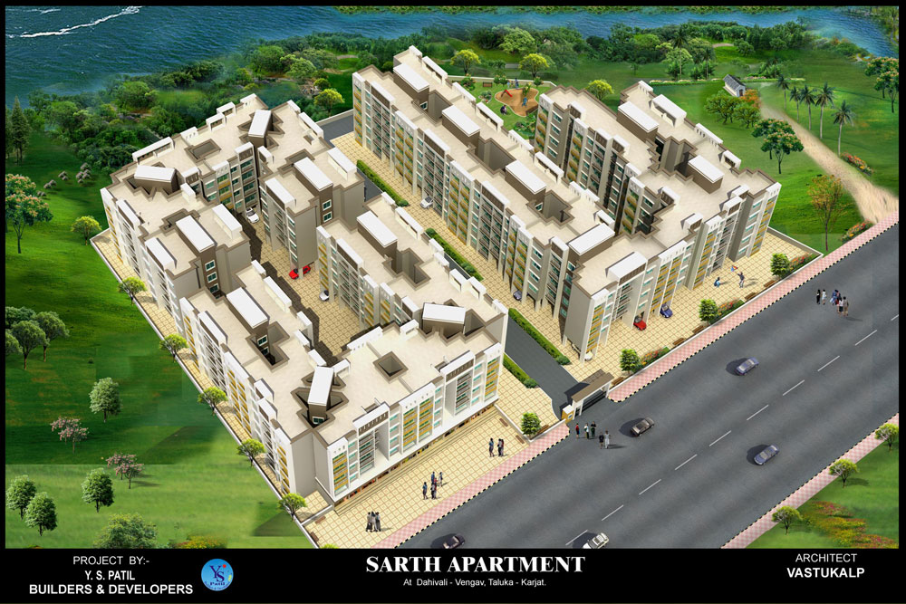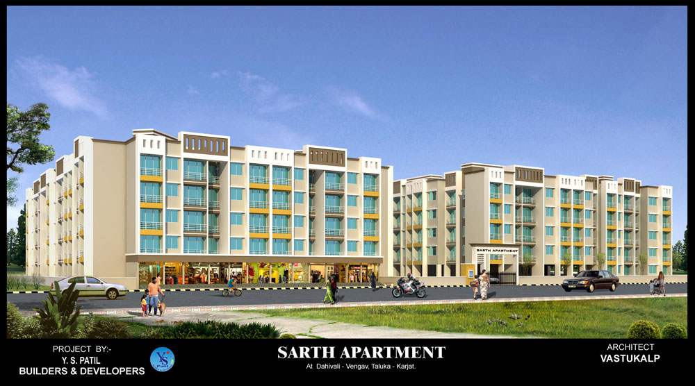 Y.S. Patil Builders & Developers presents "Sarth Apartment" A Residential project having 300 flats at dahivali-vengaon, karjat A Sarth Apartment is the perfect place for all peaceful lovers. A place located in the arms of greenery is well - connected to all modes of transportation & is situated in the vicinity of panvel city. So come, live your dream and distingwish the difference of bliss in your life.